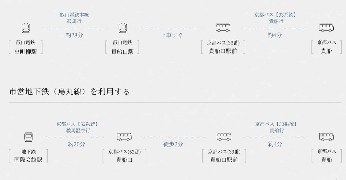 - 如果你先規劃到叡山電車/京阪電車/京都巴士沿線景點旅遊,再去貴船神社,可以考慮第一種方式