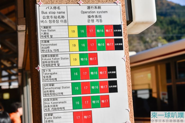 轉搭叡山電車看楓葉隧道回出町柳站,再轉搭巴士回京都站,以上資訊供參考