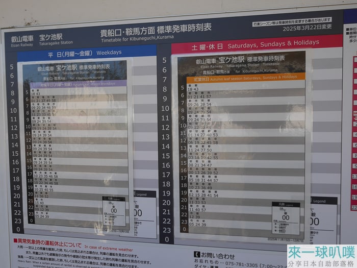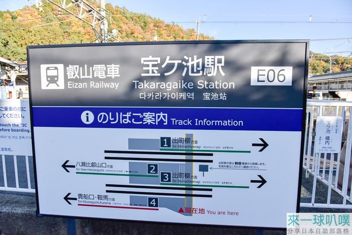第二次經驗我們是從三千院搭京都巴士到叡山電車寶池站這邊,再轉叡山電車到貴船口站