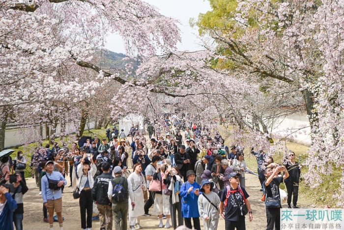 醍醐寺櫻花看點在「三寶院」內的巨大粉色枝垂櫻、「靈寶館」外的櫻花隧道,因為遊客相當多,建議可以提早到比較有機會拍到較少人的景色