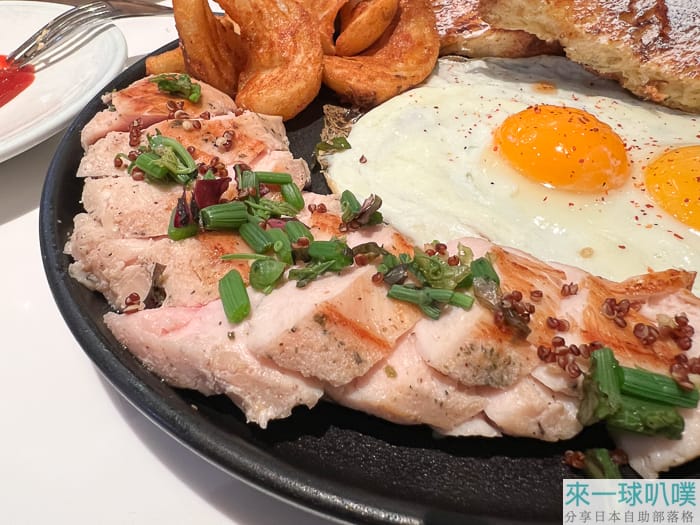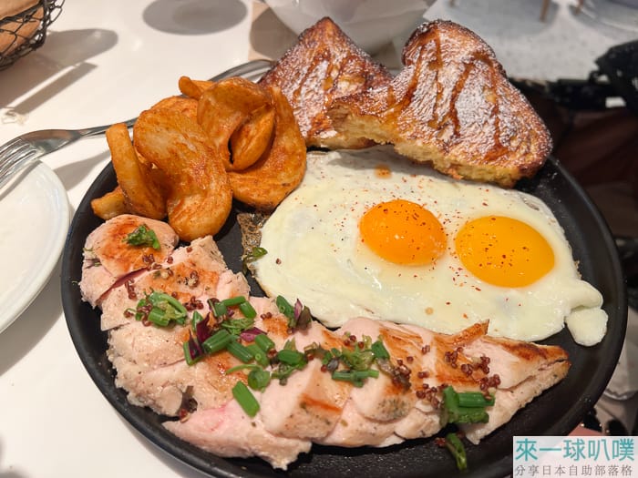 有太陽蛋、雞胸肉、炸馬鈴薯、法式吐司