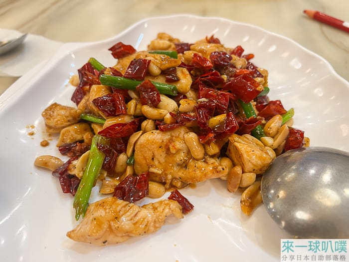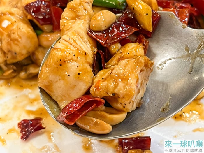 宮保雞丁雞肉炒的油亮亮,肉質不會太老,但整個有點太辣了,吃完一直喝飲料。