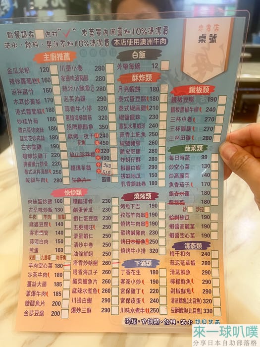 海水屋 忠孝店菜單如下,大致上就是常見的熱炒類餐點,餐點價格大概100-300之間。