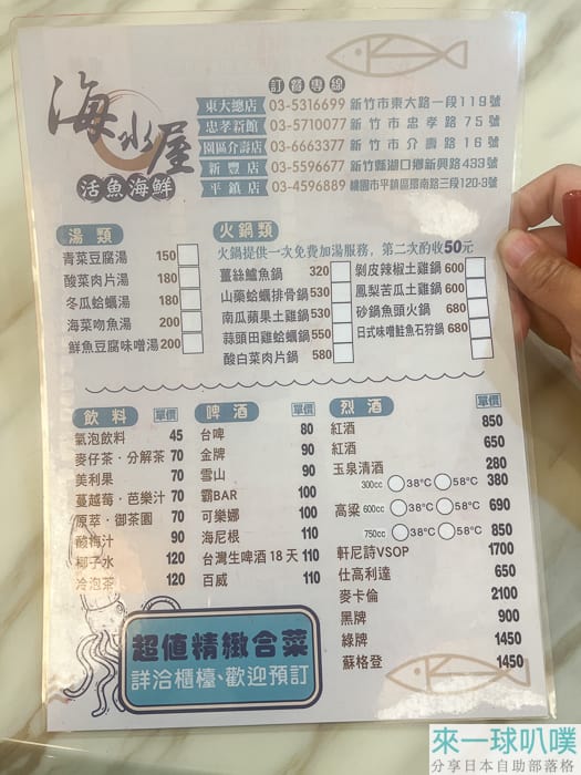 ▶這間海水屋在新竹有很多分店,這間忠孝店也開蠻久了,從以前學生時代就有了,也陸陸續續吃過幾次,以前價格較便宜,主打99元起熱炒菜,很適合學生族群聚餐,但隨著物價上漲,基本上已經沒有這個價格了,價格比較接近平價合菜餐廳的價格。