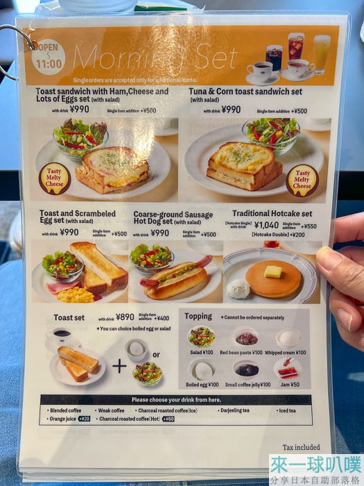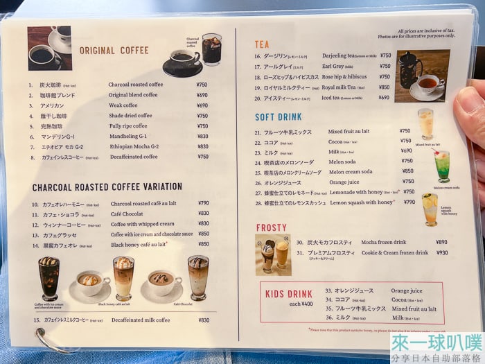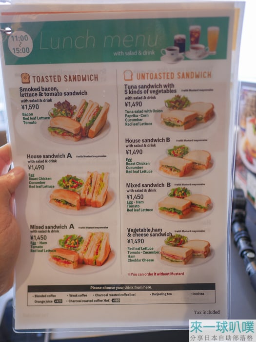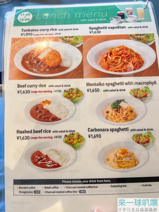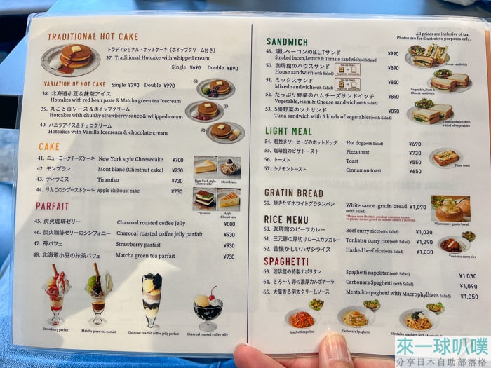 珈琲館 京都東本願寺前店菜單參考下方,店家有提供中午菜單,餐點包含莎拉與飲料