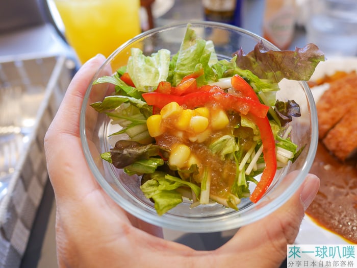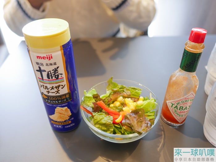 沙拉新鮮,醬料比較偏油醋醬,帶有酸味,可以加一點起分粉增添風味~!