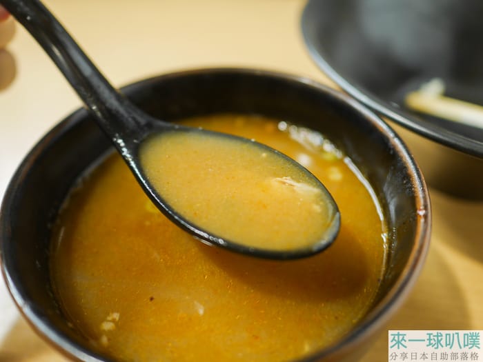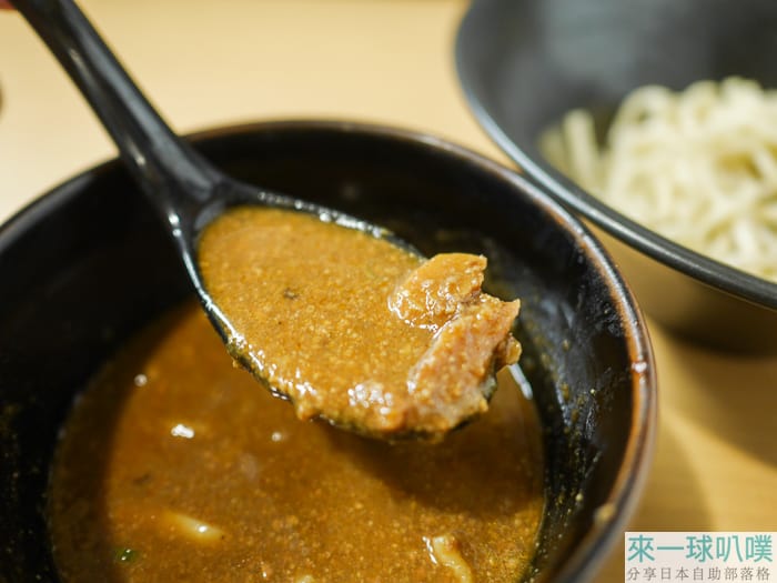 ▶這次吃味噌沾麵,沾醬很濃郁,會有一點辣度,底部有一些肉泥,感覺是很多食材去熬煮的沾醬味道,跟之前吃過的日本沾麵味道比較不同,配麵還不錯吃,但沾醬真的太鹹了,吃起來蠻有負擔感,沒幾口就很膩,麵條雖Q,但沒有像以前吃沾麵名店的麵感與香度