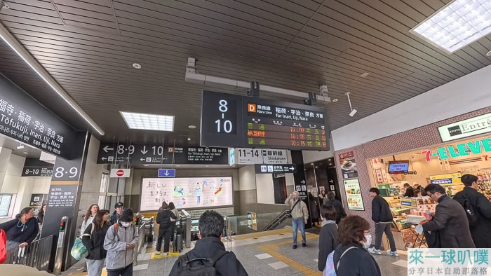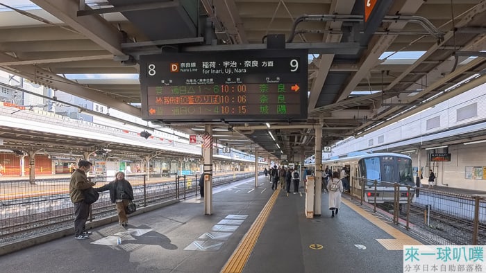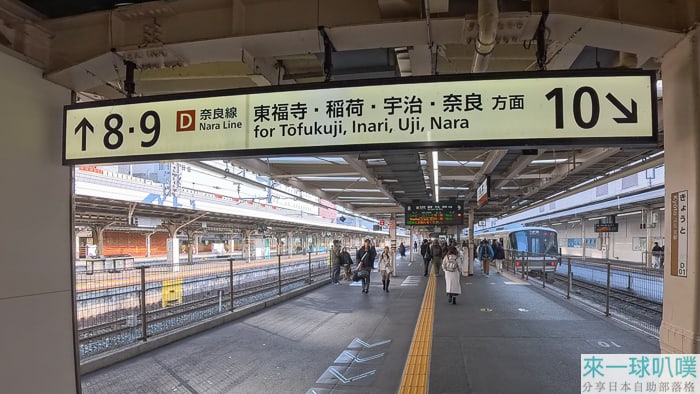 按照時刻表確認搭車月台在8-10月台,前往東福寺、稻荷、宇治、奈良方向都在這邊搭車