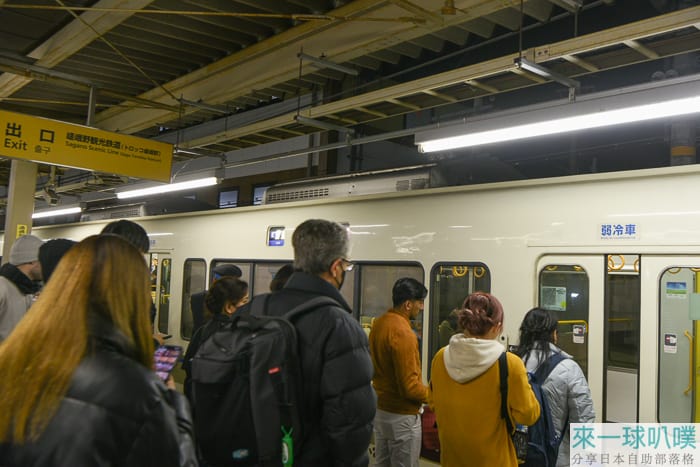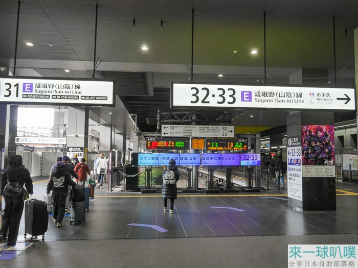 進站後確認一下搭車月台 ,往嵐山方向列車是在31~33號月台,普通車與快速列車都可以搭