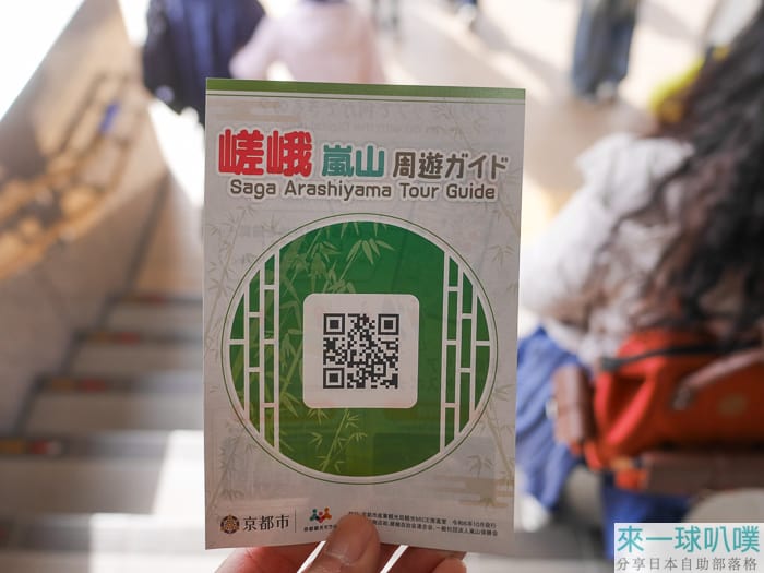 車站內會有工作人員發嵐山導覽的QR CODE條碼。