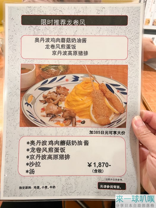 套餐 丹波高原豬里脊排蛋包飯套餐 ¥1,980
