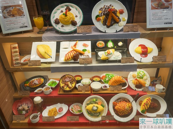 玻璃櫥窗內有餐點模型,大多都是洋食料理與蛋包飯