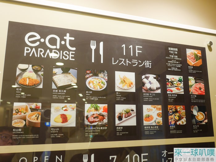 ▼京都車站旁就是伊勢丹百貨,11樓這邊設有美食街(Eat Paradise),有豬排、壽喜燒、蛋包飯、火鍋、漢堡排、西餐…等種類選擇,如果有到這邊逛街,肚子餓,可以考慮來這邊用餐。