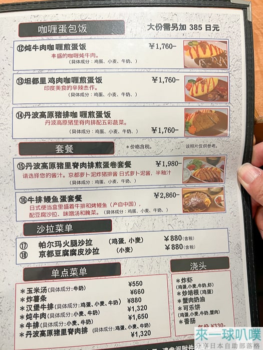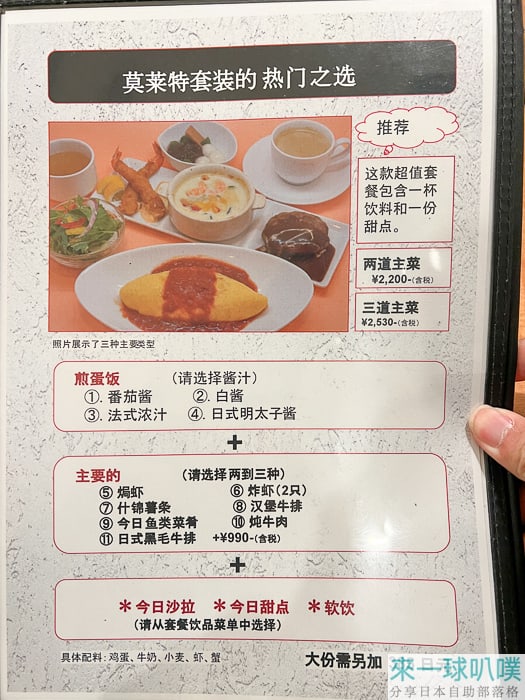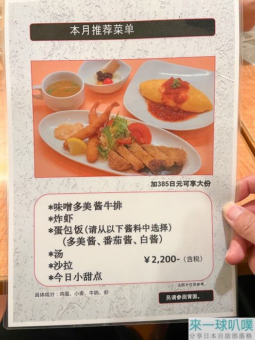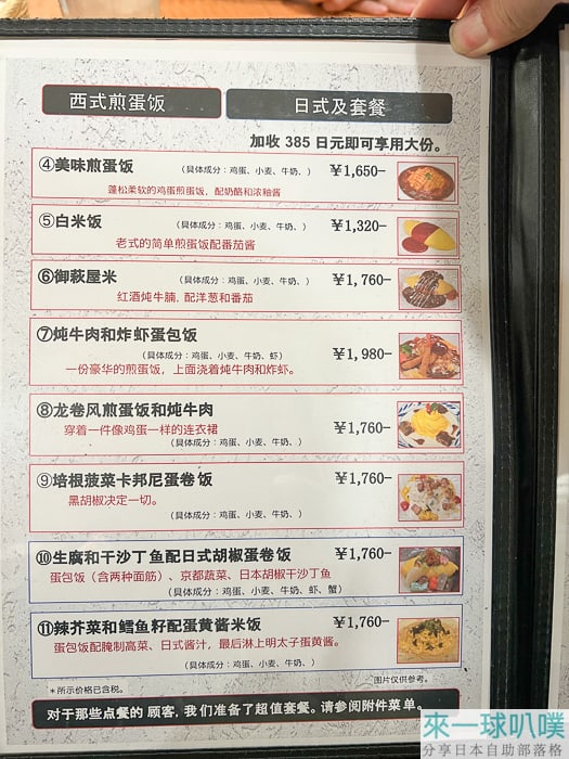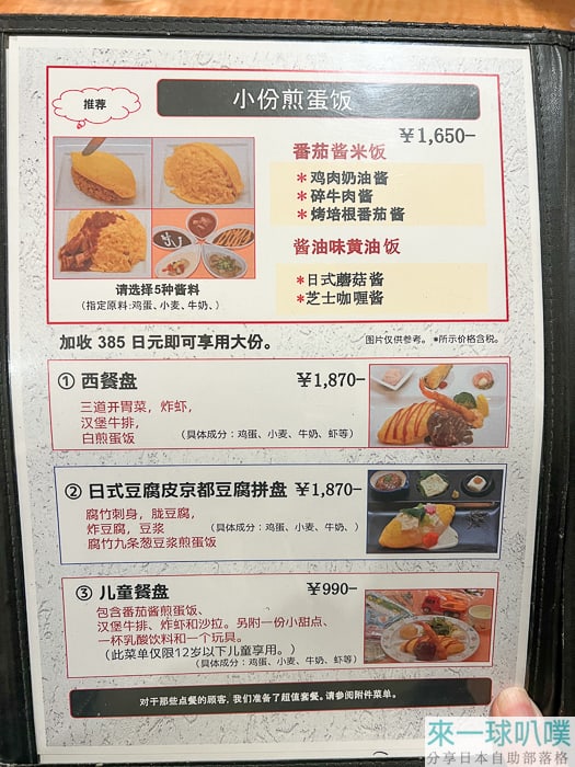 有多種蛋包飯套餐選擇,可以選擇自己想吃餐點,餐點還可以加大(+385日幣)
