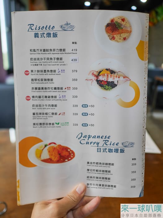 主要有義大利麵、燉飯、咖哩飯、金磚吐司、鬆餅,另外有小朋友餐點與寶寶粥