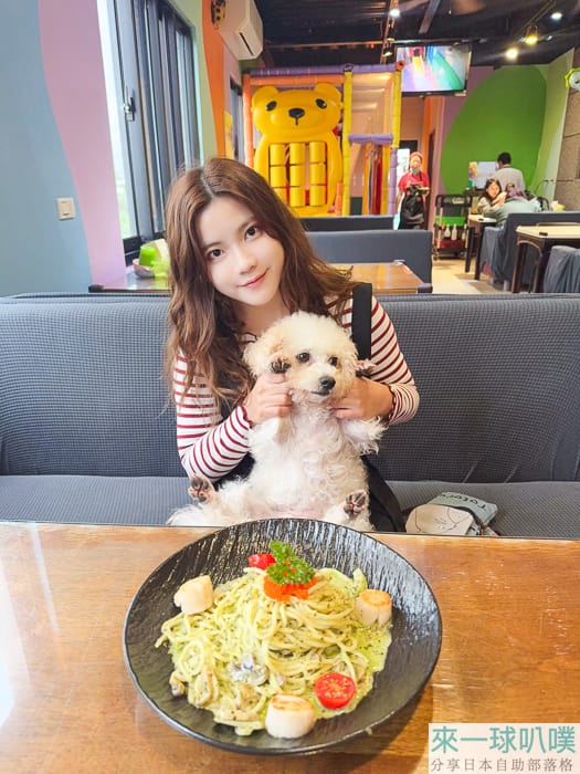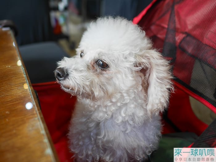 狗狗部分可以入內用餐,我看網路評價是說牽繩就可以,我們這次是推推車