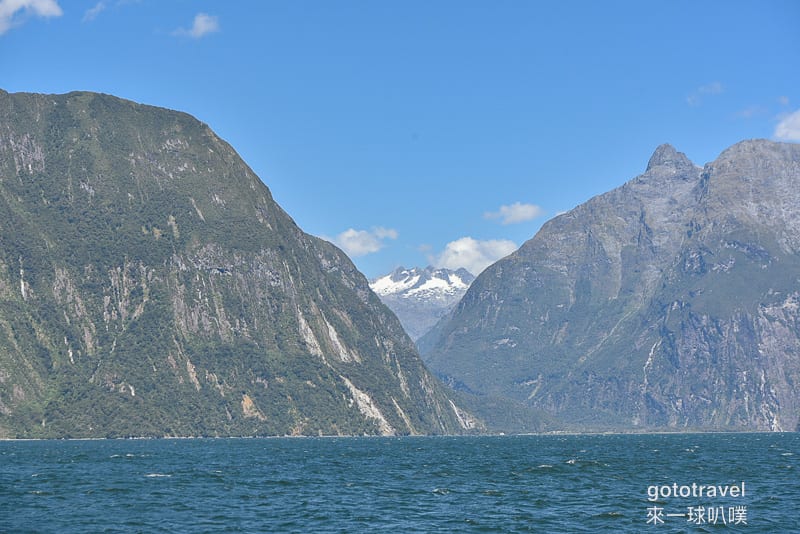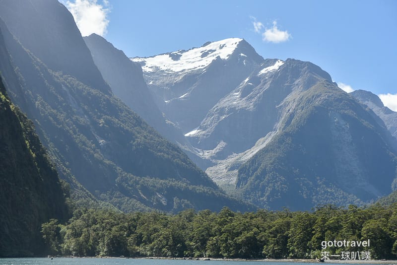 後方尖端的山好像是Mitre Peak(不確定),米佛峽灣這邊的最高峰
