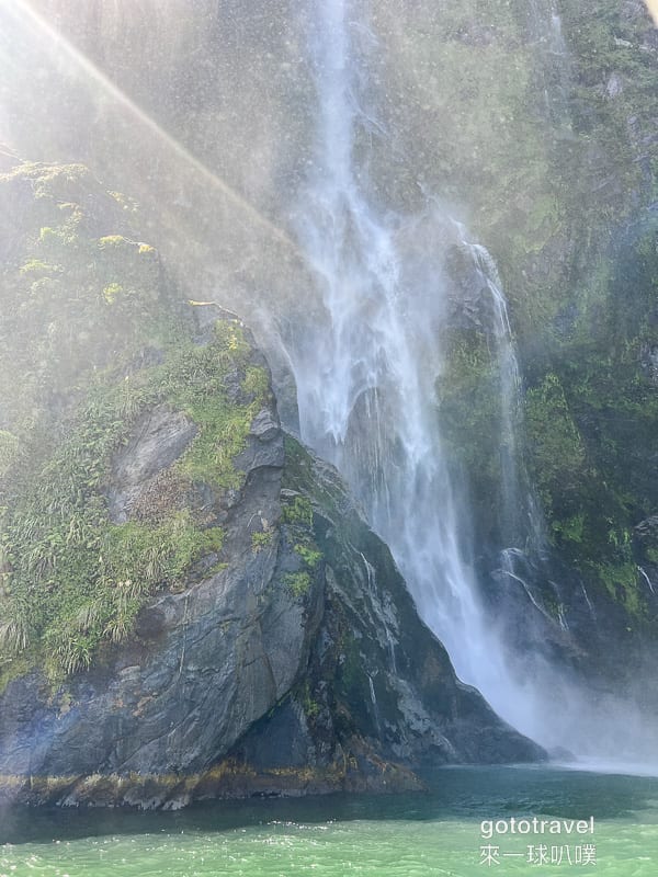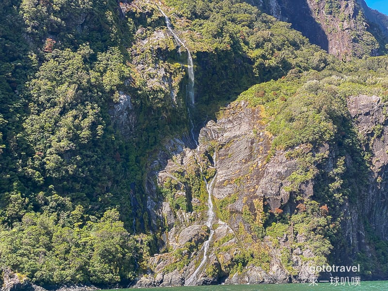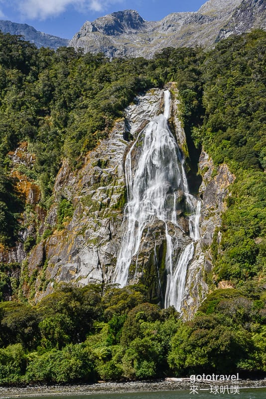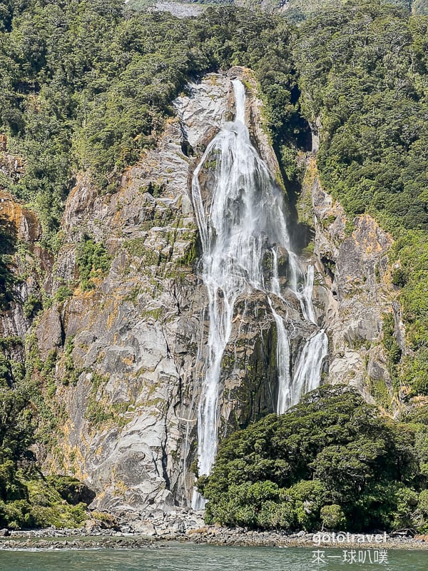 斯特林瀑布 Stirling Falls 高達 146 公尺、峽灣第二高瀑布、遊船最常靠近體驗水霧的著名瀑布。