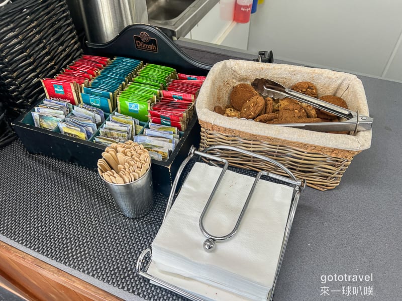 室內有提供免費餅乾與咖啡,餅乾是曲奇餅,咖啡就不太好喝