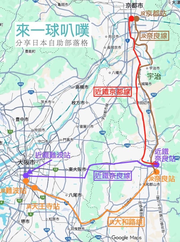 大阪出發到奈良的交通方式,請自行類推