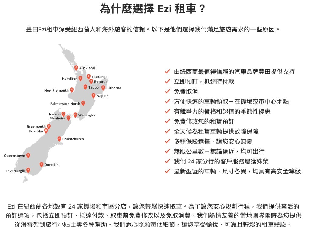 紐西蘭Ezi Car Rental營業據點基本上各大機場與主要城市都有,也可以甲地租乙地還!