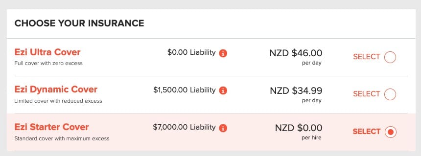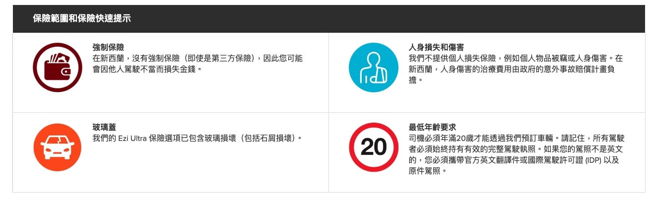 紐西蘭租車Ezi Car Rental保險方案介紹