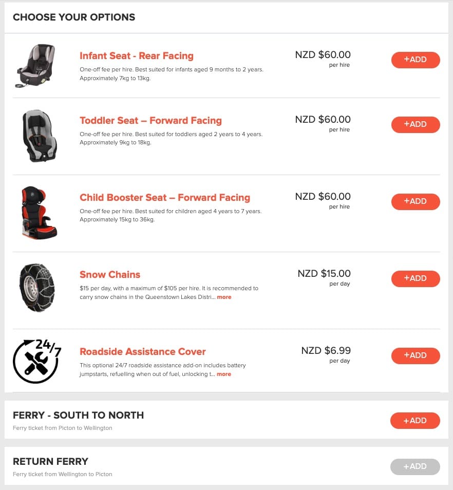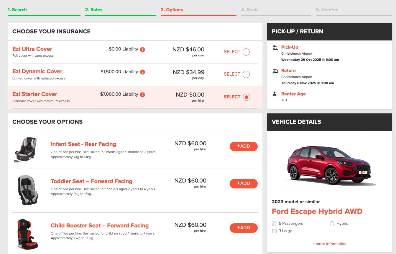 紐西蘭租車Ezi Car Rental選購項目