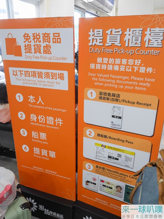 如果是從澎湖機場搭飛機回台灣,也有「澎坊三號港免稅店」免稅商品提貨櫃台可以索取商品!