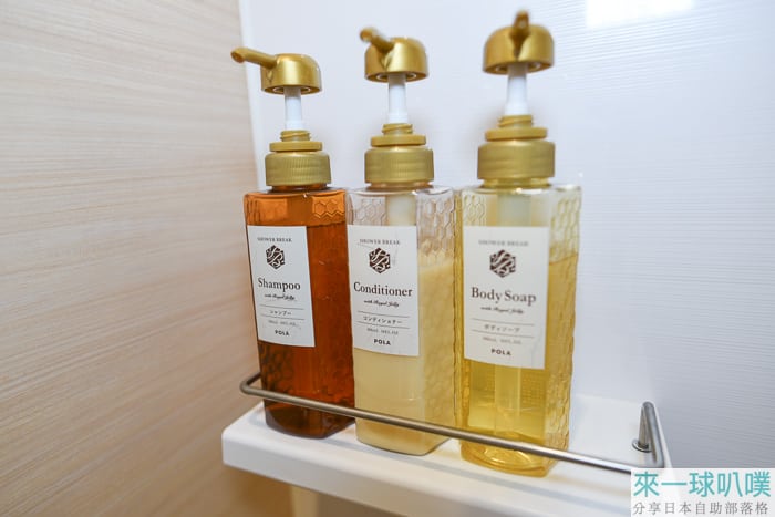 盥洗的沐浴乳與洗髮乳是使用POLA品牌~