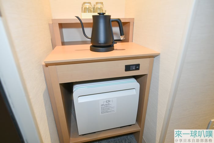 基本傢俱都有提供:電視、空氣清淨機、熱水壺、行李架、衣櫃