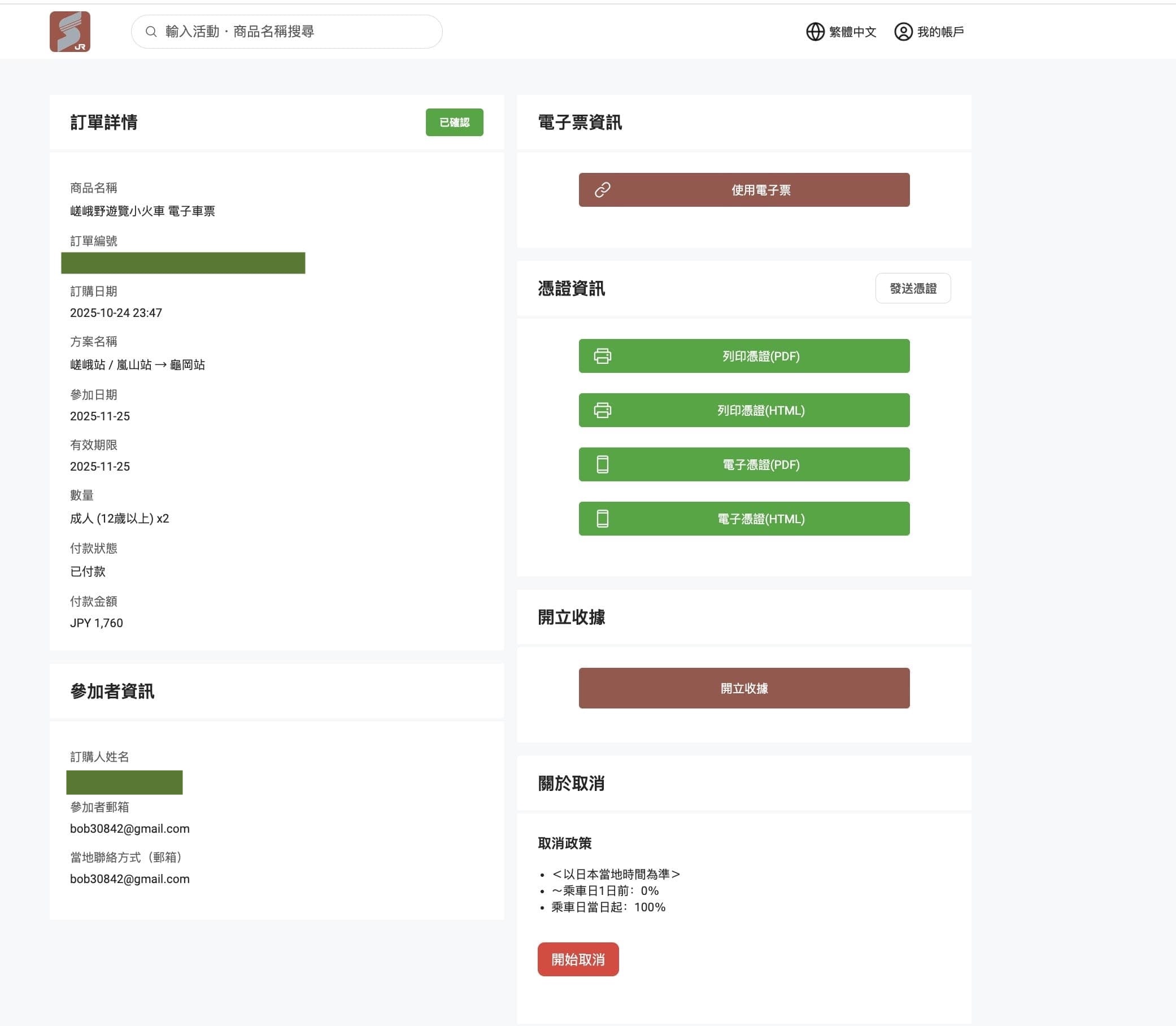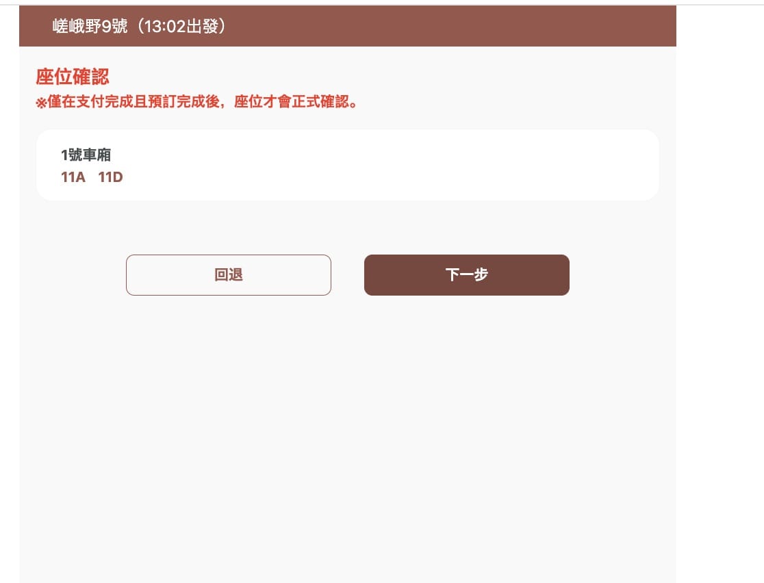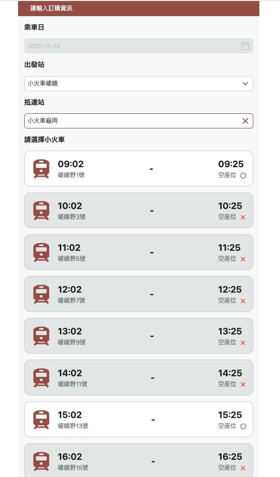 - ※在訂單確認後,恕無法變更小火車乘車日、出發時間,如欲變更,請取消原訂單後再重新預訂。