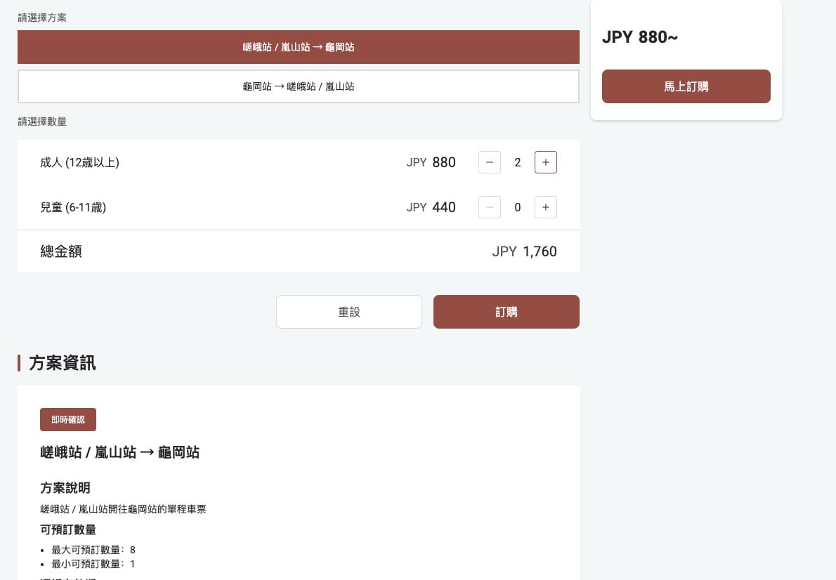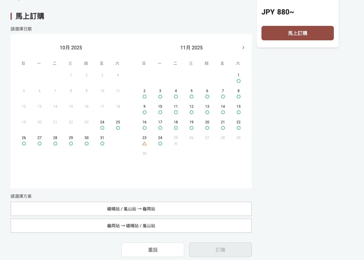 ▶這次2025年預計會前往關西賞楓,因為想選靠窗座位,因此有從官網預約嵐山小火車車票,簡單整理一下預約流程給大家參考。