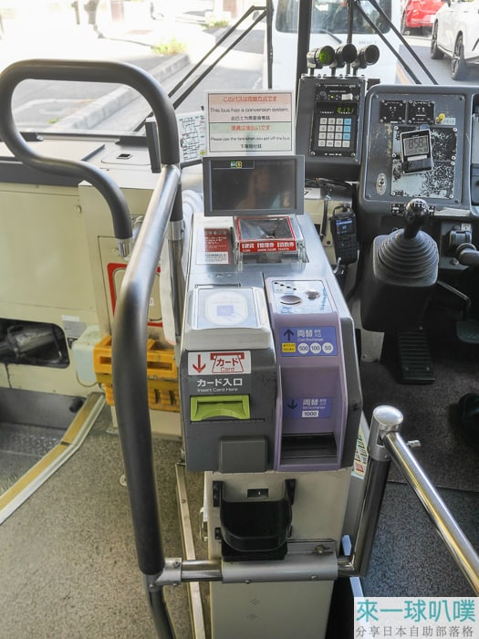 1. 現金支付請將整理券投入運賃箱,並支付正確車資(不找零),要換零錢,可以付款前,先使用兩替,兌換零錢