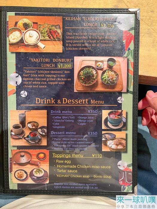 宇治地雞家心菜單參考下方,有提供日文與英文菜單