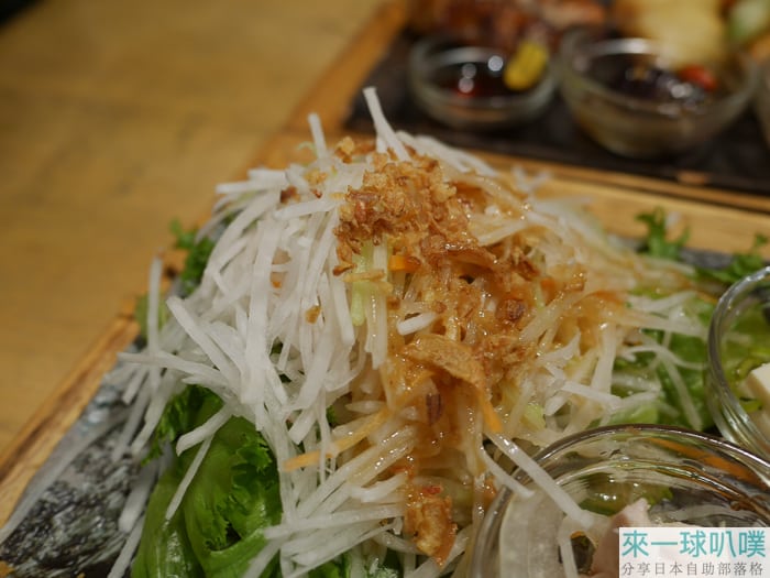 沙拉醬料偏酸解膩用,店家比較特別是使用小黃瓜絲,很清爽開胃!